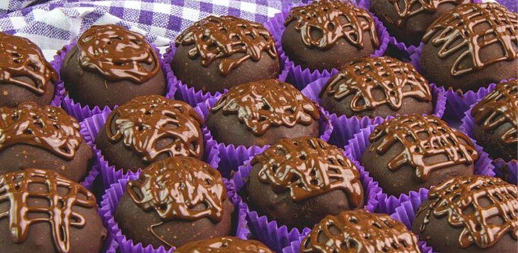 Immergete le palline nella glassa al cioccolato, disponetele su un vassoio e lasciatele raffreddare. Decorare i cioccolatini con il resto della glassa. I vostri tartufi biscotto sono pronti per essere serviti